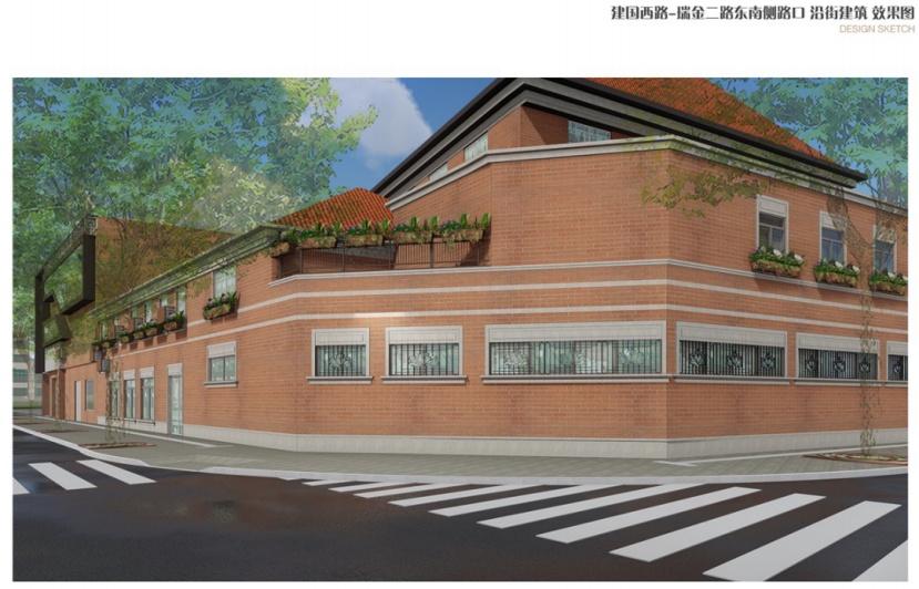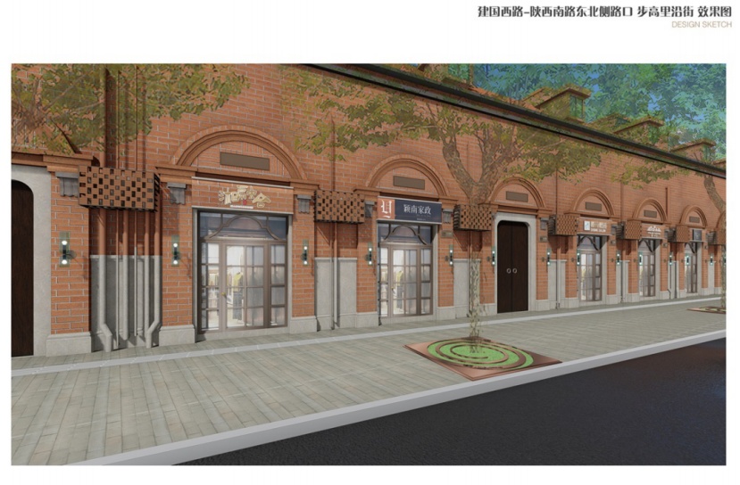 本设计方案拟对建国西路进行因地制宜的形象提升,将建筑原有的风貌作为基底,对店招店牌、护栏等进行细节化、精细化的设计改造,打造法式浪漫的街道步行体验感。