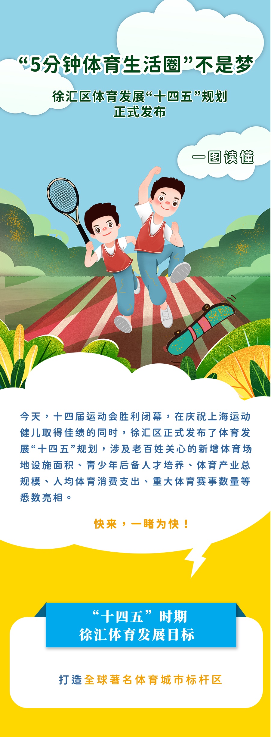 近日,徐汇区体育发展“十四五”规划正式发布,“5分钟体育生活圈”不是梦。该规划涉及市民关心的新增体育场地设施面积、青少年后备人才培养、体育产业总规模、人均体育消费支出、重大体育赛事数量等内容悉数亮相。快来,一睹为快。