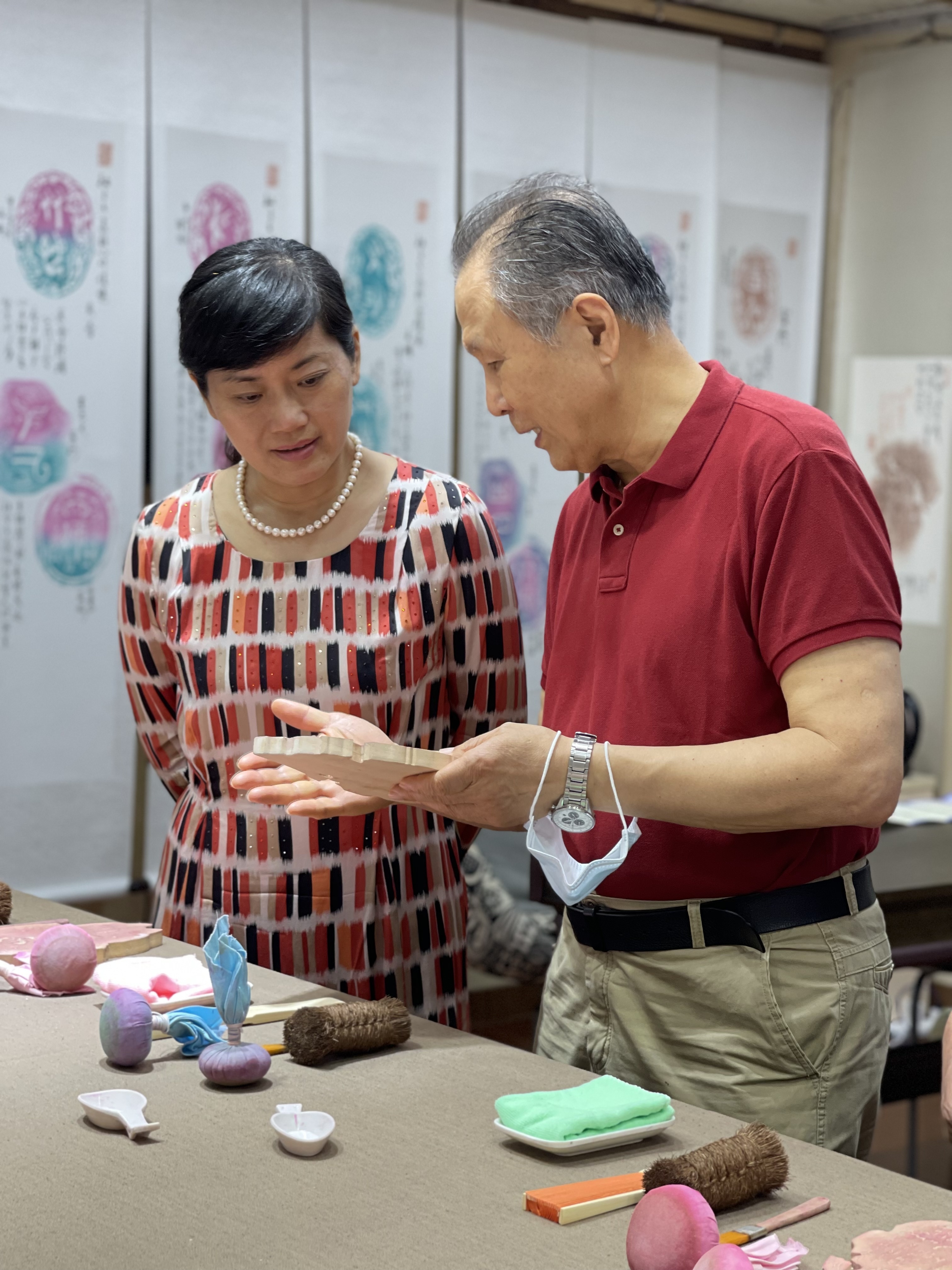 活动现场,上海市殷商甲骨文研究院院长、“上海细拓”传承人韩志强的到来,把气氛推向了高潮。十多年来,韩志强与妻子袁秀环潜心研究并积极为激活和传播甲骨文文化而奔波,以及开展各种公益宣传活动。他们用一生的坚持守护非遗资产,让深奥难懂的千古文字,以人们喜闻乐见的形式“重新复活”在大家眼前,使得“绝学不绝”,并让这一优秀的中华文化走出国门、走向世界。