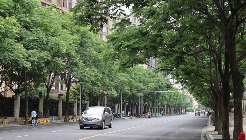 上海的林荫道冠大荫浓,有着降温增湿、有效调节局部气候等生态功能。林荫片区是将单条林荫道串联,连线成片,让林荫道生态功能进一步辐射扩大。