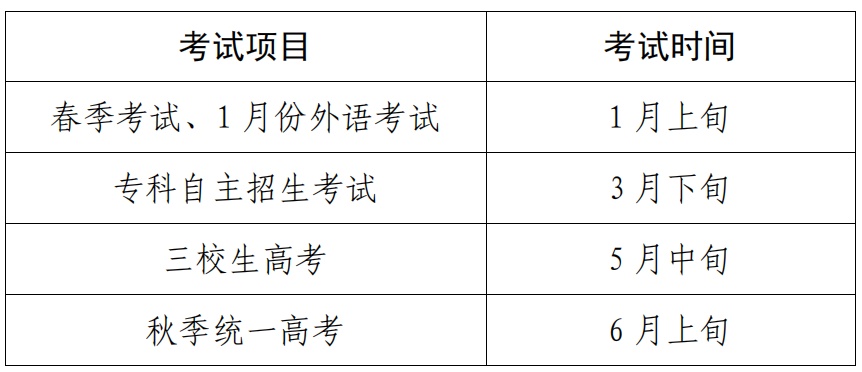 其中,春季考试将于2022年1月举行,秋季统一高考将于2022年6月举行(具体日期以后续考试项目文件为准)。详见↓