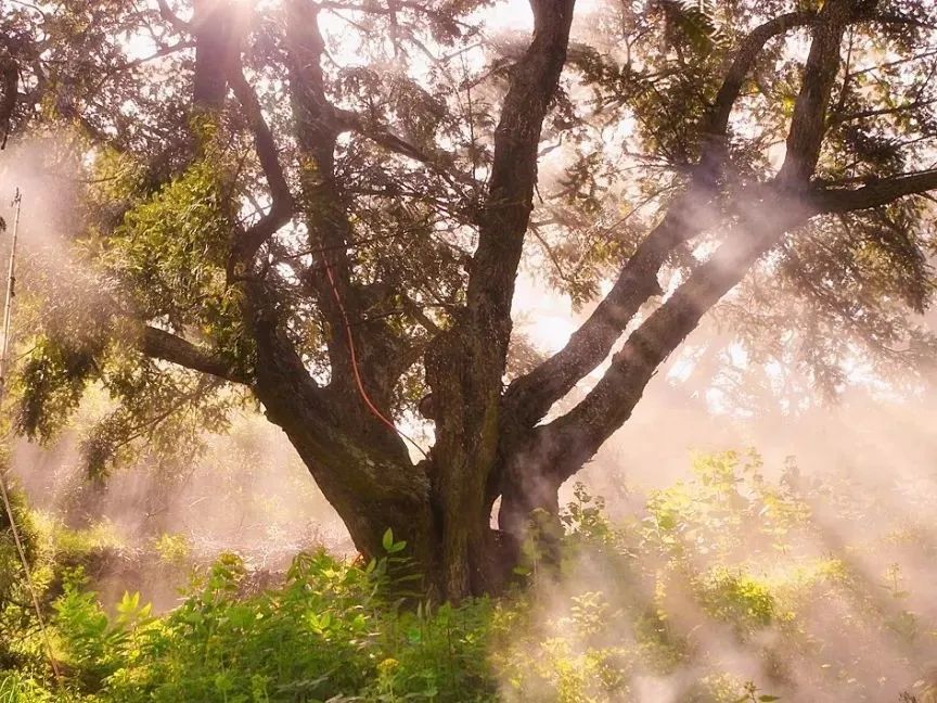 在巍峨苍翠的会稽山深处,隐藏着一处世界上独一无二的奇观:10.5万棵香榧树连山成片安详地看着古剡曾翻卷过春秋风云。树上的香榧虽已摘完,香榧树的姿态却变得更加舒展和轻盈。在薄薄的秋雾中,像一卷卷唯美的古风水墨画。