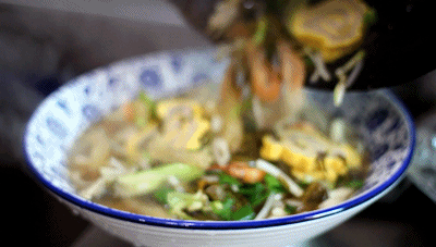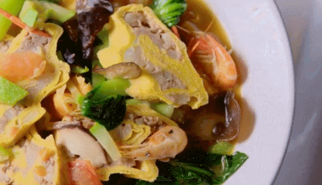 草塔弹面是近些年火爆起来的一碗面,算是诸暨面界的“网红”了。弹面,在于一个弹字,所以原材料一定要选的好,而且揉面的技术要过关。一面碗里承载了足够多的热情:冬笋、西红柿、蛋卷、炸猪皮、河虾……满满一大碗,配上Q弹的面条和鲜美的汤汁,愣是可以吃出了火锅的感觉。