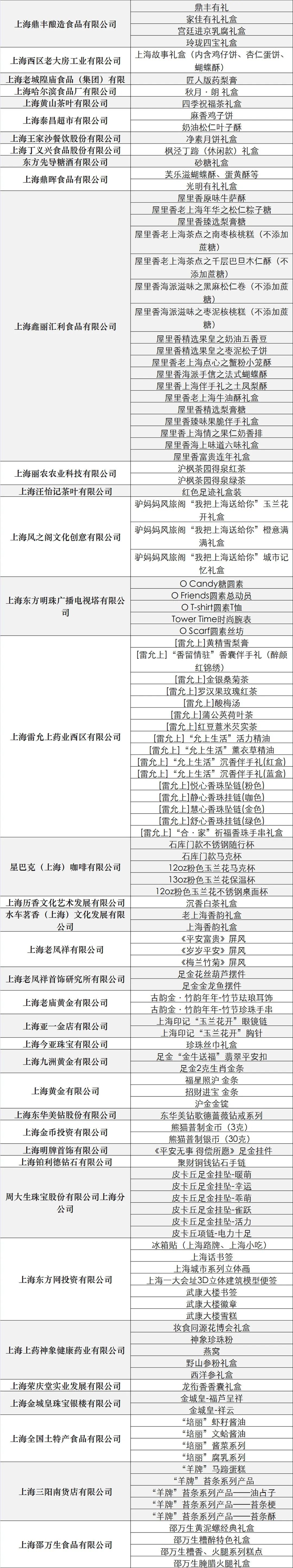 最终入选上海礼物优选店59家,其中线下实体店铺58家,线上店铺1家;77家企业的245种商品入选上海礼物品牌商品,其中食品类商品119种、服装类商品5种、文创类商品43种、珠宝玉器类商品28种,化妆品商品26种,酒类商品12种,其他12种。这些商品和店铺统一使用专门设计的“上海礼物”标识,并在今天正式与广大消费者见面。