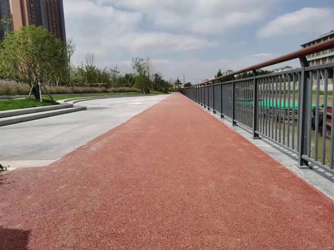 东安公园绿道:采用雅致的深灰色,形成良好底色,烘托公园内的粉墙黛瓦、翠竹绿树,与公园景观相得益彰,主园路的铺装材质为透水沥青,不仅可以有效改善公园雨天积水问题,同时也提升了游客步行的舒适度。
