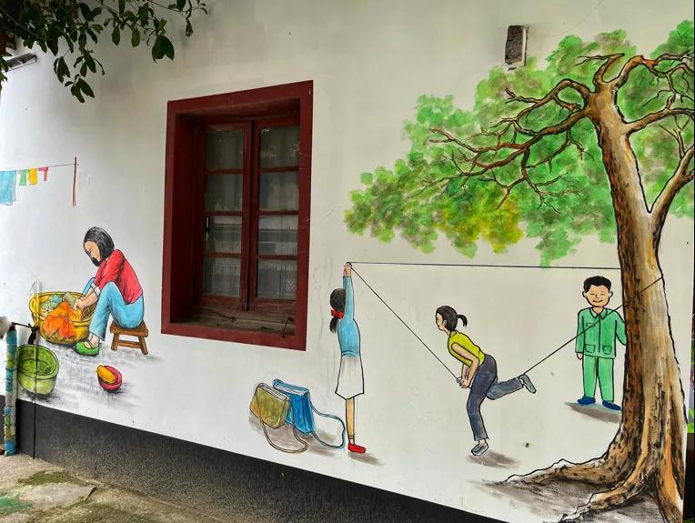远景村以“远景王宅”为艺术中心,院内以画为景,院外墙画与景融为一体,营造出美育的氛围。