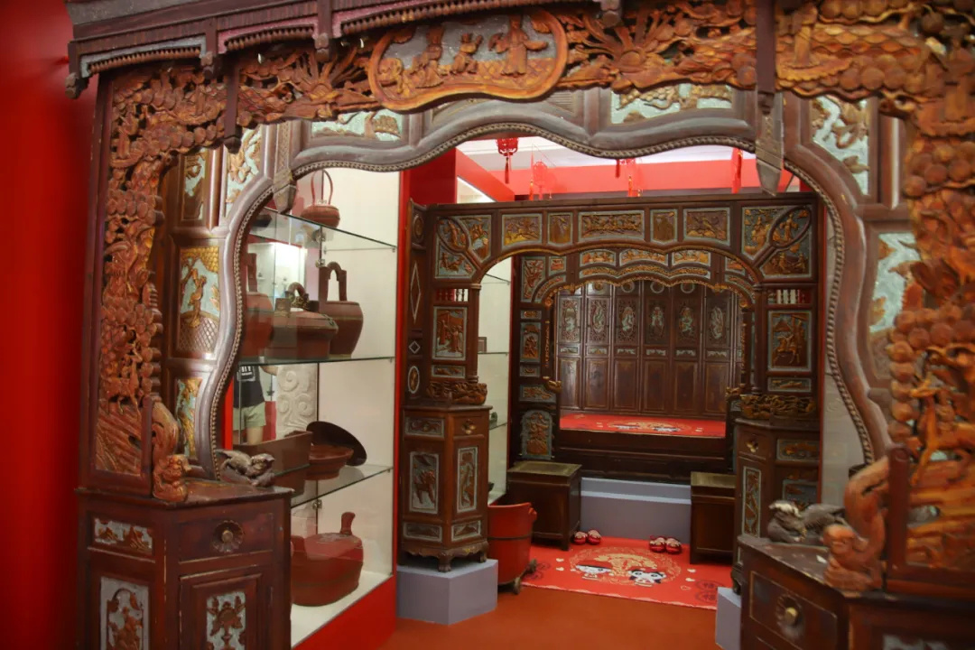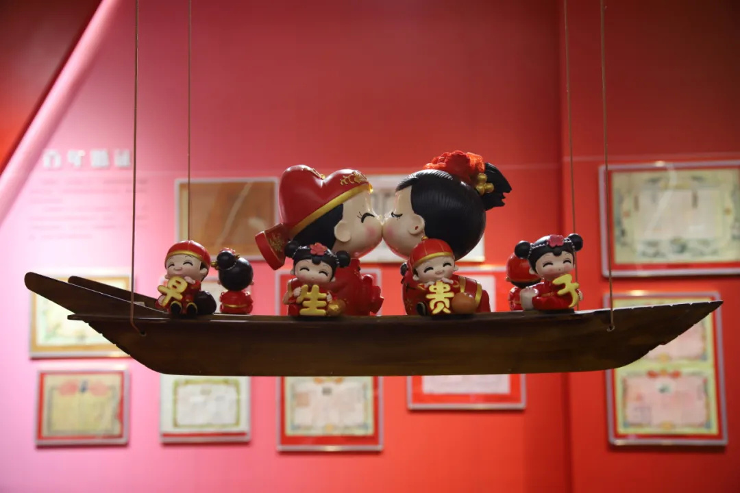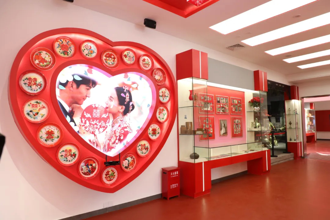 一走近婚俗馆,便映入满眼的红色,彰显着浓浓的江南婚嫁喜庆氛围,展馆用文字、照片、实物等多种形式呈现给观众,琳琅满目的收藏品更是将一个个时代的婚俗特色展现在游客面前,生动详实的介绍了江南水乡婚姻文化的历史变迁,展现出婚姻习俗的时代变迁,让观众零距离体验和感受婚俗文化的魅力。