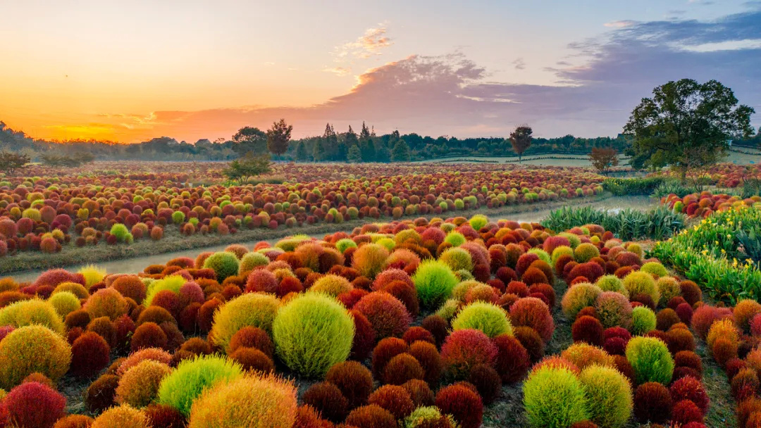 来自日本的地肤,就是经过四年的选育,今年观赏面积将超过200亩,植株数量将超过40万株,有望成为全球最大的地肤观赏地。为了照顾好每一棵地肤,我们从9月开始,安排专人对地肤进行“发型整理”,所以我们现在看到的地肤,个个呆萌可爱。再过些日子,地肤将由绿转红,“花开海上”的秋季美景将拉开大幕,而生态园也将迎来一年中的又一个游玩黄金期。