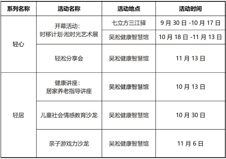 ”时移计划·淞时光艺术展“作为吴淞社区“轻淞计划”的主题展,是吴淞展区最新对公众开放的打卡点。轻淞计划将吴淞社区的“轻淞生活”展现为轻体、轻心、轻居三个维度。