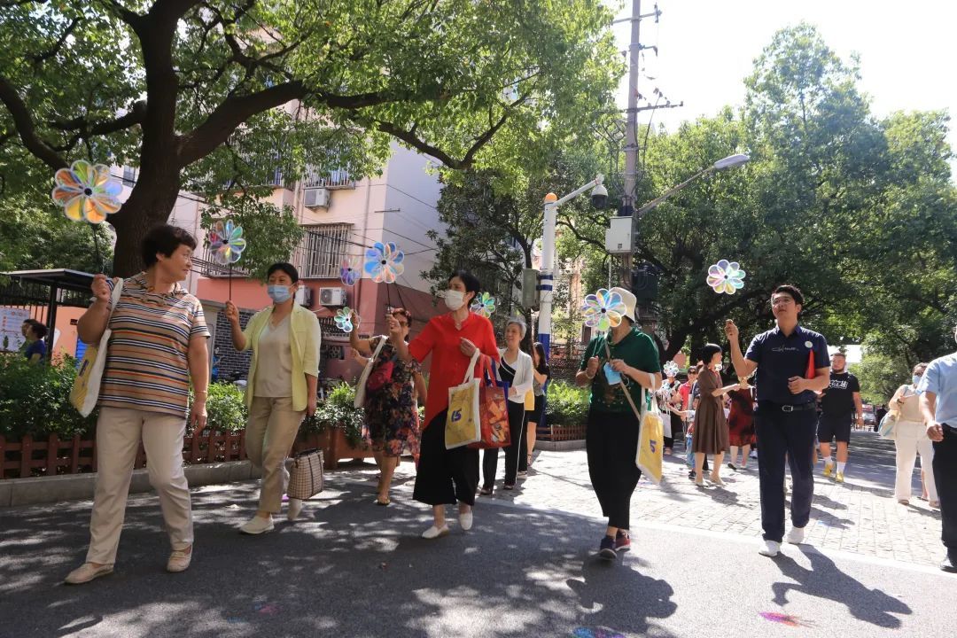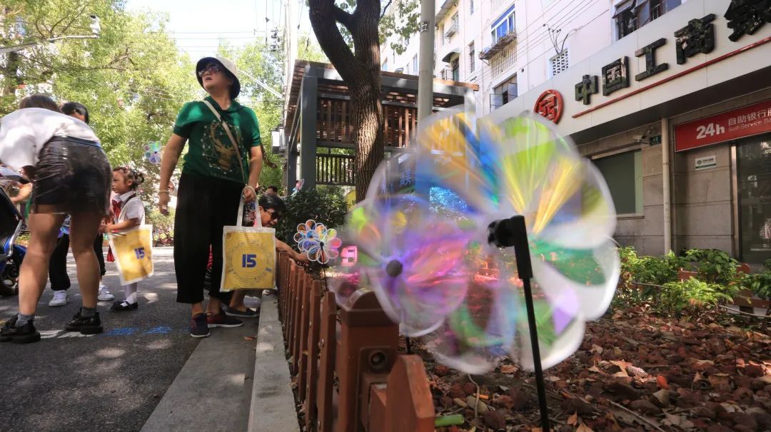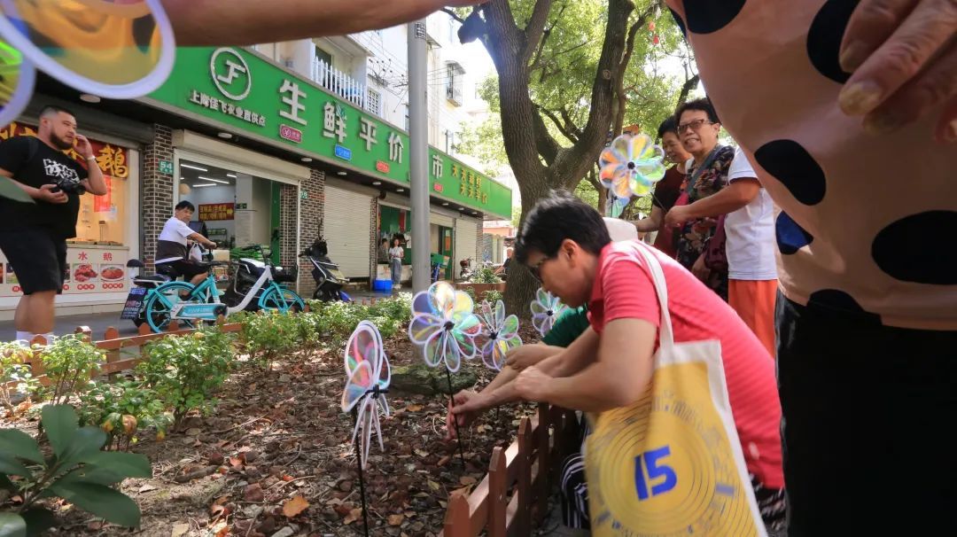 ▲风车插放仪式,参与者们热情高涨,风车迎着明媚的阳光,宛如春日的花在道路两旁绽放