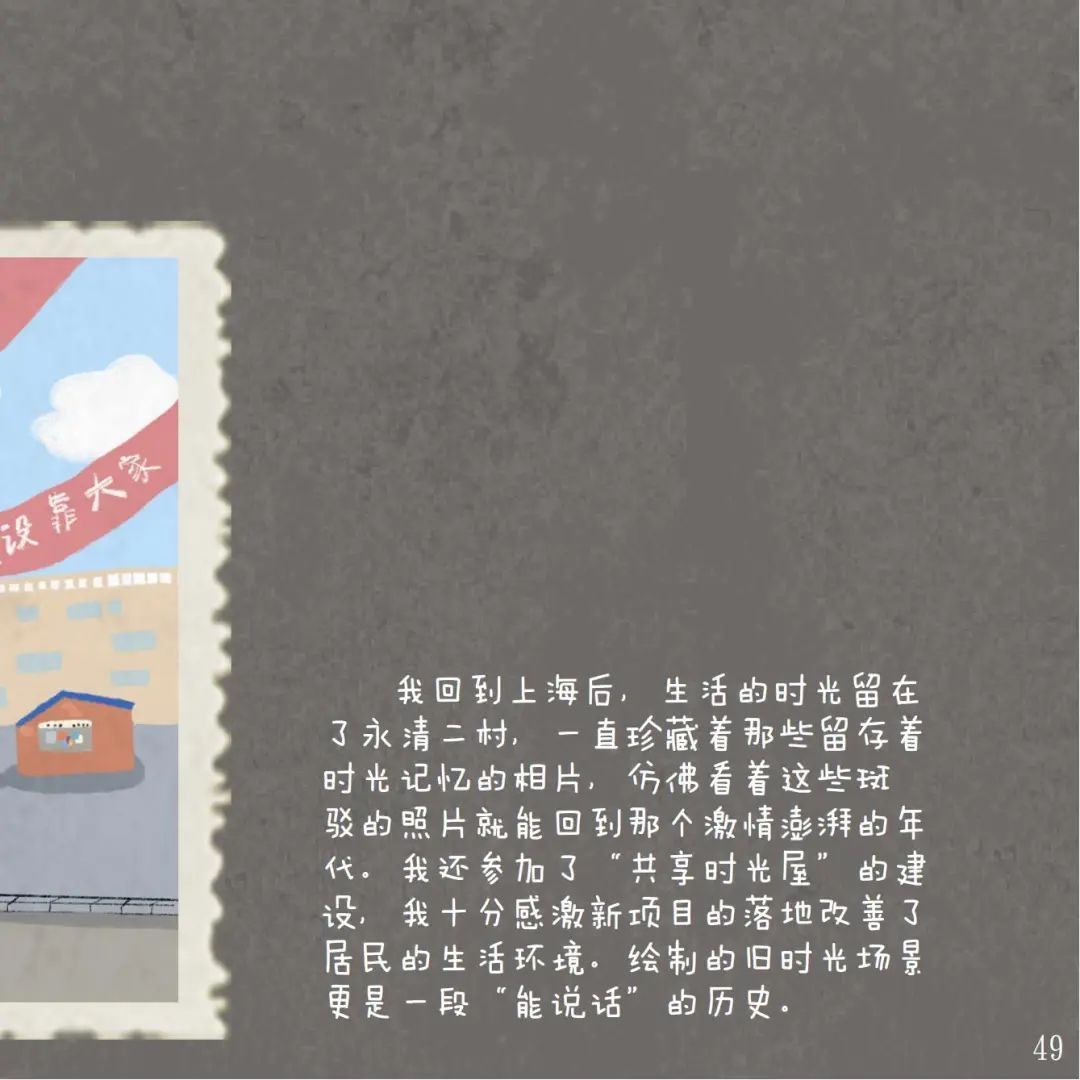 居民口述的故事,结合他们手中货真价实的历史证明,使得访谈所呈现而出的是饱满的生活性和丰富的艺术性,这也引发了艺术家们创作的热情,但是没有居民的参与,便无法生动呈现历史场景。因此,居民和艺术家的互动成为了创作的极佳方式。