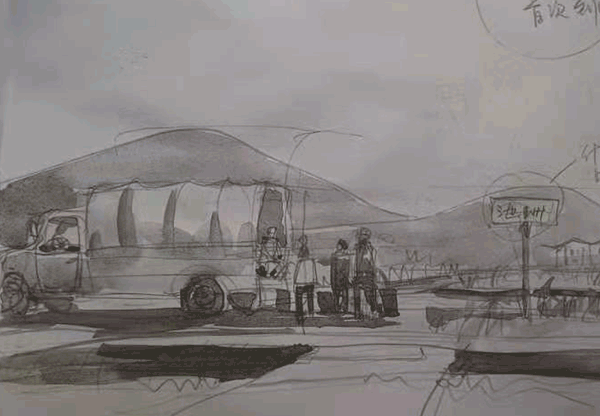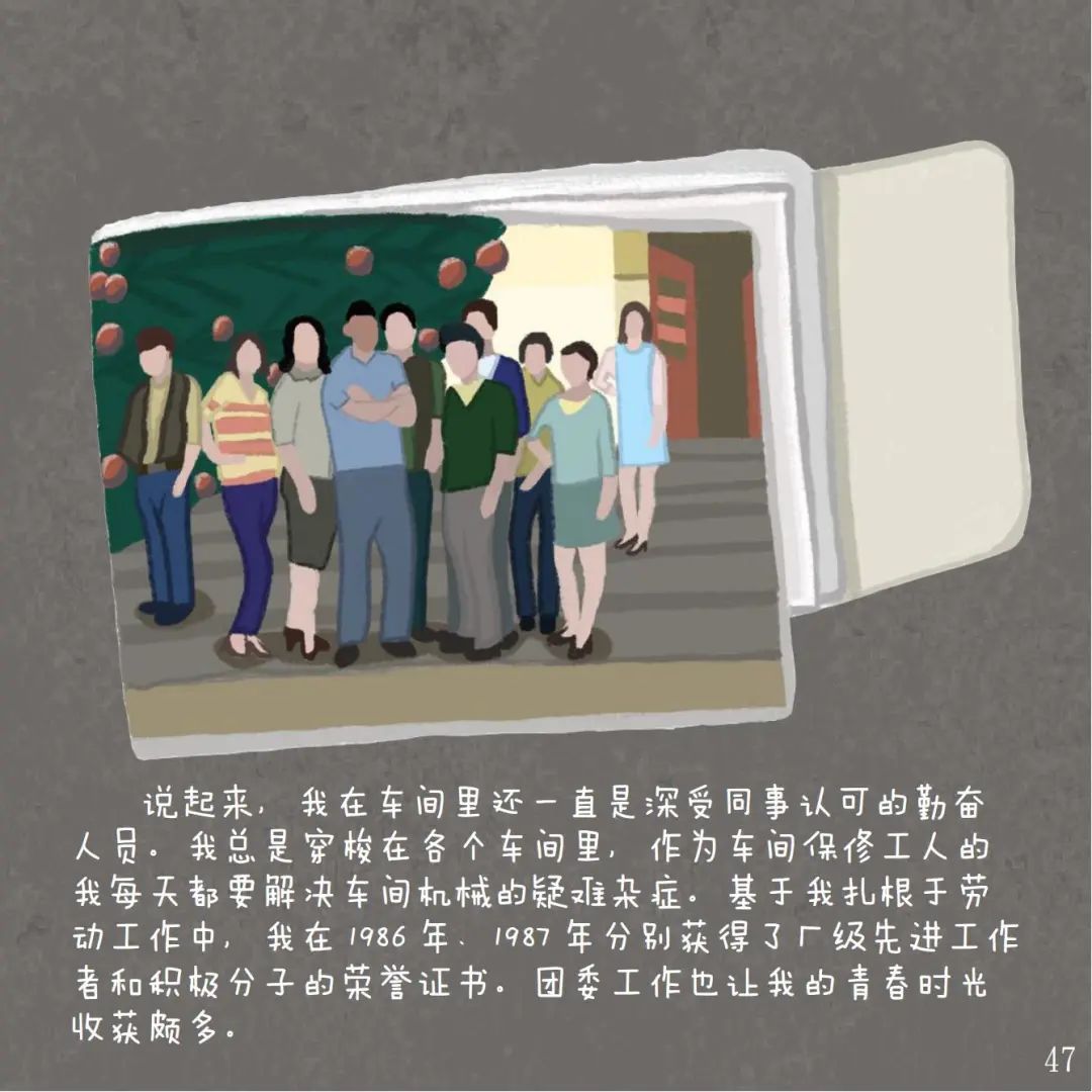 ▲从写满记忆的黑白稿,到填满色彩的画作(部分展品的创作历程)