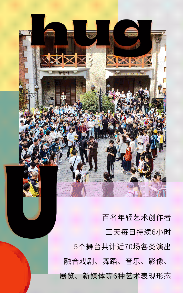 本届艺术节除思南剧场戏剧盲盒游戏《白兔子,红兔子》需要提前购票入场外,其他所有演出均免费向公众开放(部分演出需提前线上预约)。为了给公众提供更为优质的演艺内容,艺术节首次联手上海昆剧团、上海话剧中心、上海国际舞蹈中心剧场等为公众带来身临其境的演出内容。思南时区画廊在艺术期间将邀请受公众喜爱的青年艺术家周日央以“拥抱”为主题带来“HUG HUG”新展,给初秋的思南带来温暖的颜色。