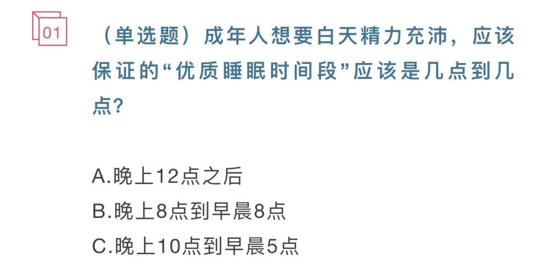 晚上10点到早晨5点是“优质睡眠时间”。因为人在此时易达到深睡眠状态,有助于缓解疲劳。