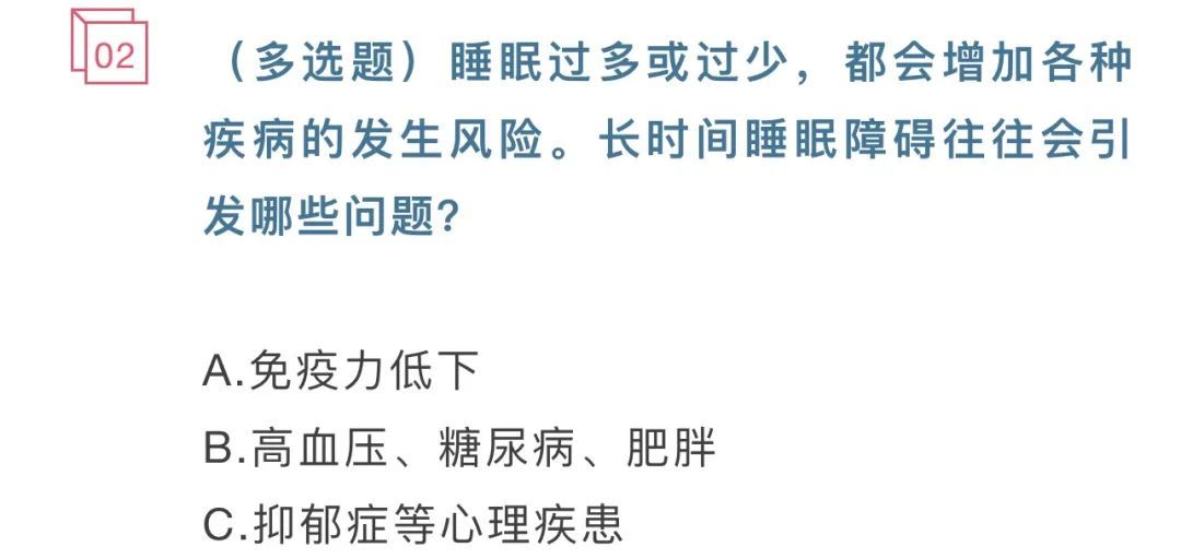 长时间睡眠障碍往往引起白天的功能障碍(工作能力、认知功能)、人体免疫力低下、烦躁,同时还易引发高血压、糖尿病、肥胖、心脑血管意外及心理疾患等,甚至造成猝死。