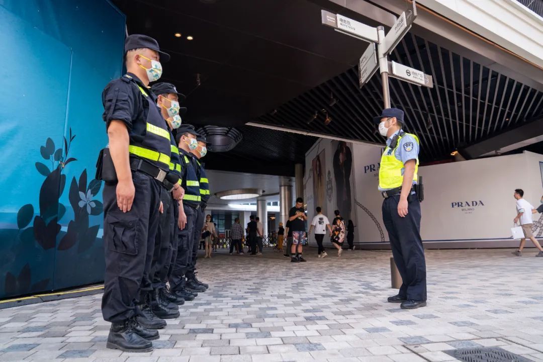 考虑到国庆期间太古里可能面对的客流压力,前滩派出所提前对接运营公司,在商场内设置一处联勤联动服务工作站“平安眼”,专门派驻警力长期驻守负责指挥协调安保力量进行客流疏导,同时,商场内公共视频也被加入“平安眼”并接入派出所综合指挥室,确保全覆盖实时视频巡视,派出所可以快速察觉发现治安隐患。