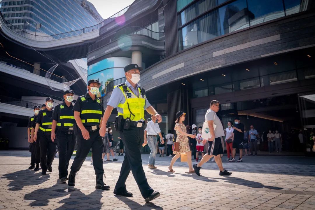 国庆假日伊始,比预计中更大的国庆客流,前滩派出所及时应对客流高峰,将所内全体民警坚守岗位,驻守在太古里及周边区域全力以赴疏导客流,确保秩序平稳有序。每天都在这里参加保安工作的前滩派出所责任区警务队队长史俊逸表示:“虽然每日人流高达10万,国庆当天甚至一度高达15万,但由于警方开展的多种有力措施,至今未接报报警类警情。”