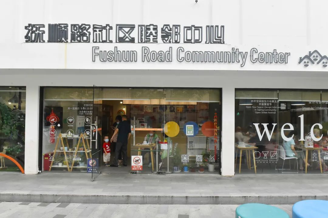 四平路街道抚顺路社区睦邻中心位于抚顺路和鞍山路交叉口,属于街道“闹市街口”的黄金地段,建筑面积约570平米,设有舌尖space、邻里部落、邻里客厅、YIYA乐园、稚慧坊、微剧场等功能空间,常设活动有生态科普微展览、阅读服务、舞蹈、瑜伽、手工等服务项目。