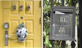 这类信箱极简到什么程度呢?门和信箱融为一体,一扇门就是一个信箱。在门外完全看不到信箱的实体存在,只能看到门上有一道横向或竖向的开口。一般人路过稍不注意几乎都会错过,以至于信箱主人都会在开口旁写上温馨提醒,告诉邮递员这个开口可以放信件、水电账单等。