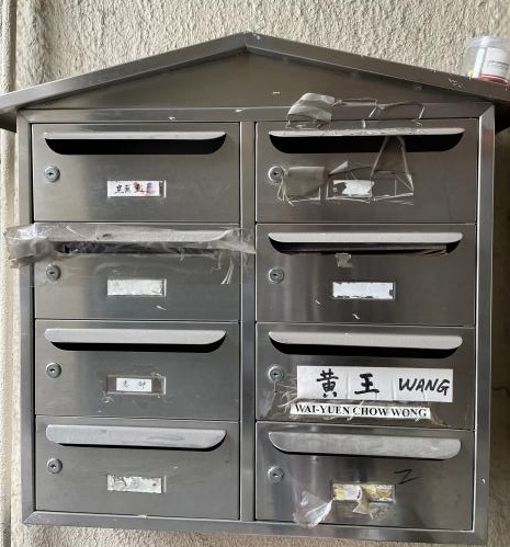 洪、王、张、许、刘、孙……这种信箱上张贴着每层楼每户人家的姓氏,俨然一张一目了然的百家姓黄页。有些同时排着两个姓氏的,则多为室友或夫妻俩。除了百家姓,也偶有英文名出没,可见街区的国际化程度。