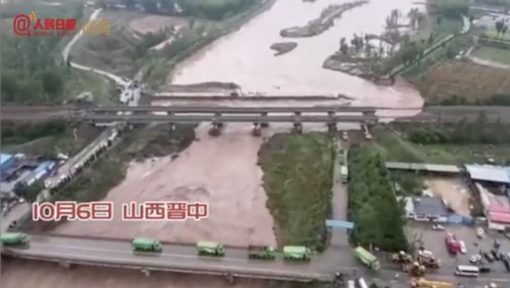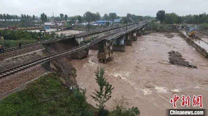 同日,山西南同蒲线祁县至东观间昌源河大桥桥台被冲垮,枕木悬空,影响行车。停运的旅客列车已增至10对。800余名救援人员赶赴现场,全面抢险。