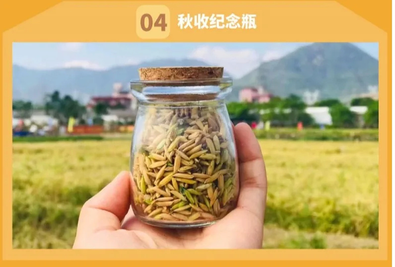 颁发秋收证书——成功完成秋收的农事挑战,每个小朋友都是棒棒的小小农夫,感受到了农民伯伯的辛劳和粮食的来之不易,老师为大家颁发秋收证书,赠送秋收纪念瓶,小朋友们可以采集一些稻谷回家做纪念。伴着可爱的稻草人,大家一起拍个合照留念。
