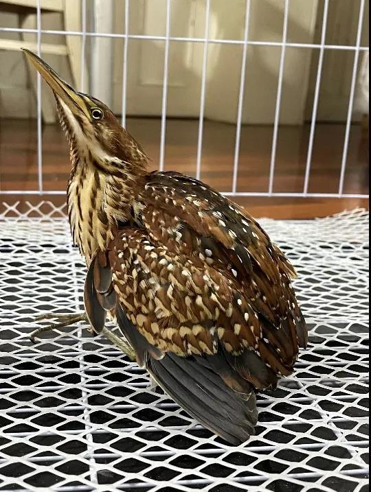相比上述两只鸟类,这只夜鹭就没这么幸运了。工作人员在虹口的河道内救助了它,救助时,它的一只脚正被河道内私布的渔网缠住,流血不止。