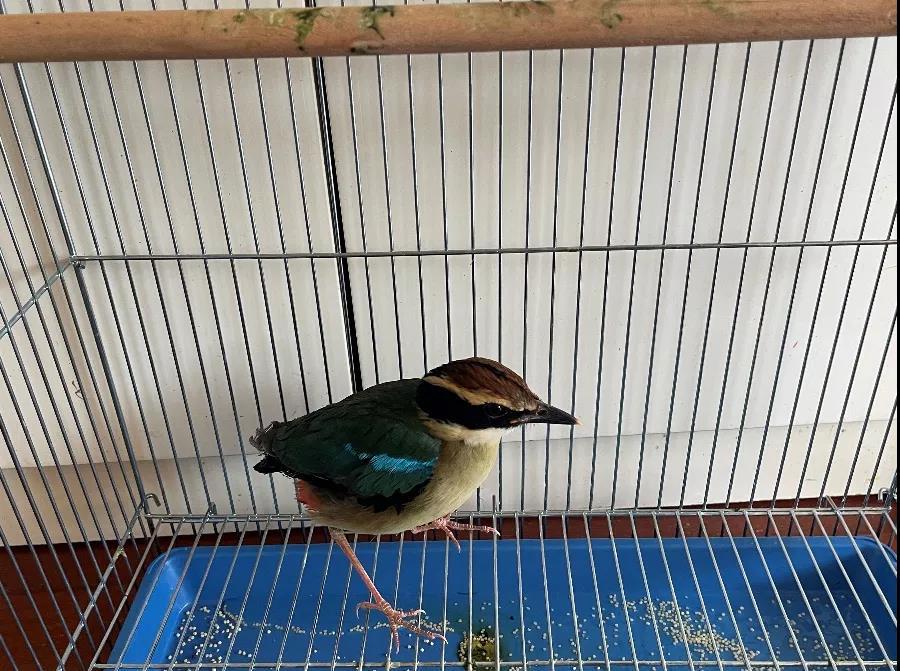 国庆节前一天,接到市民黄先生来电,说有一只漂亮的小鸟飞进了他家,不愿离开,怀疑受伤需要救助。负责区野生动物保护的工作人员立即上门,发现是一只仙八色鸫,属国家二级保护动物,在全世界的总量不到一万只。