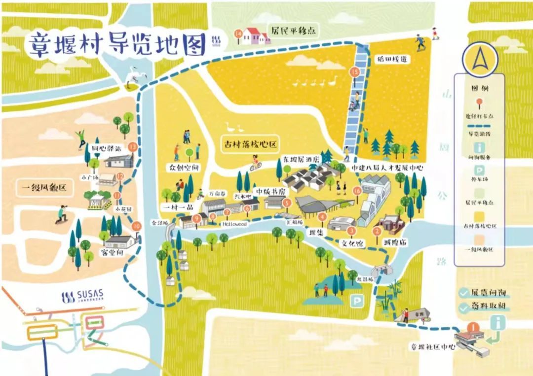 今年5月,在市规划资源局的综合研判下,确定章堰村作为首批乡村社区生活圈试点村庄及空间艺术季的策展点。青浦区各单位积极推进章堰村乡村社区生活圈规划的落实,在慢行可达的空间范围内打造以总部服务为主导,创新生产、睦邻友好为辅助场景的乡村社区共同体,让新老村民在乡村都能体验便利、健康的生活。通过整合条线部门和多元实施主体力量共同推进建设,全方位体现了上海“15分钟社区生活圈”规划建设实践提倡的“共创治理机制、共商社区需求、共绘规划蓝图、共建社区家园、共评治理成效、共享治理成果”等治理模式。