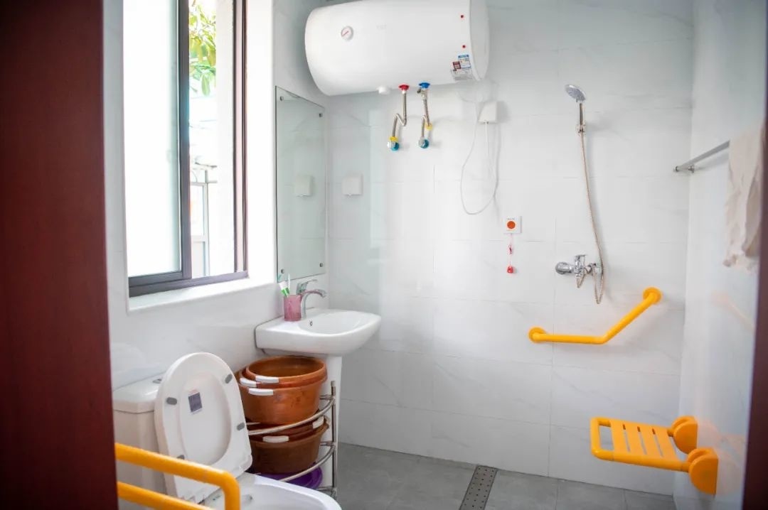 据悉,敬老院3号、4号楼建于2003年,由于时间久远,设施较为陈旧,给院内老人的日常生活带来了诸多不便。今年3月份以来,漕泾镇对敬老院的两幢大楼进行了升级改造。在原有的基础上,对外墙真石漆涂饰、屋面平瓦翻新,增加了照护台,对护理房、走道、卫生间等进行适老性改造,进一步优化了敬老院住养环境。