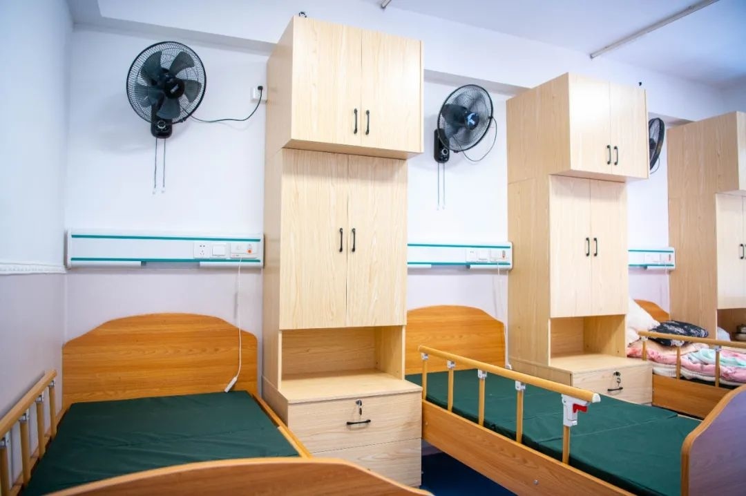 据了解,此次翻修共投入资金325万余元,按照养老机构建设标准进行了改造。原来的普通床全部换成了多功能护理床,可以升降床头,方便老人用餐,两侧的护栏则方便老人起居。此外,每个房间的床位之间都安装了隔帘和独立的橱柜有效保护老人的隐私。敬老院内共房间有41间,核定床位100张,现入住老人90人。