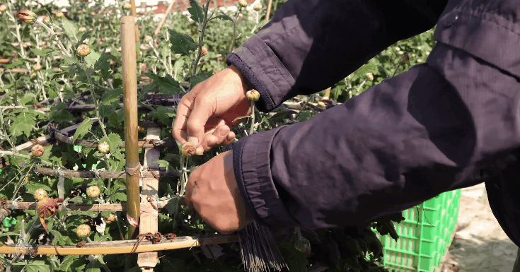 大立菊等品种需要精心盘扎,让花朵开得更均匀,更有观赏性。