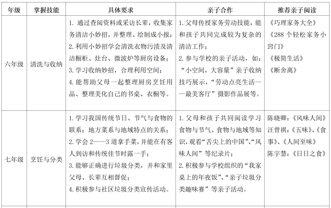 需要注意的是,各阶段的家庭劳动没有很严格的区分,“穷人的孩子早当家”,不乏有学龄前的孩子就会做饭的,在保证安全的前提下,只要孩子能力所及就可让其参与体验。