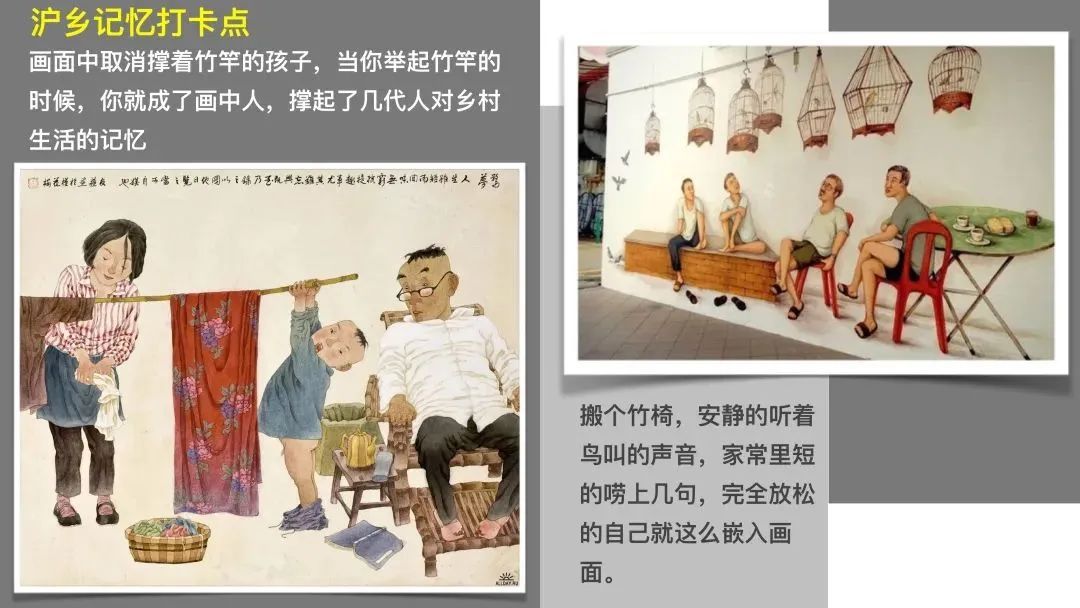 艺术文创场景:乡村可以成为园区,海沈十二工坊不仅代表十二家店,也是海沈一年四季十二个月的风光,有关于美食、美学、美游,体现沪乡文化。