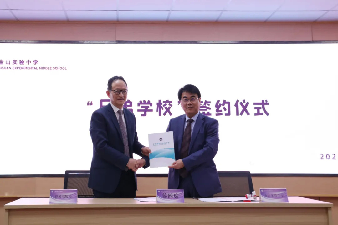 前不久,金山实验中学与上海市静安区教育学院附属学校进行了结对共建,希望能够与市区名校的教育保持同步。
