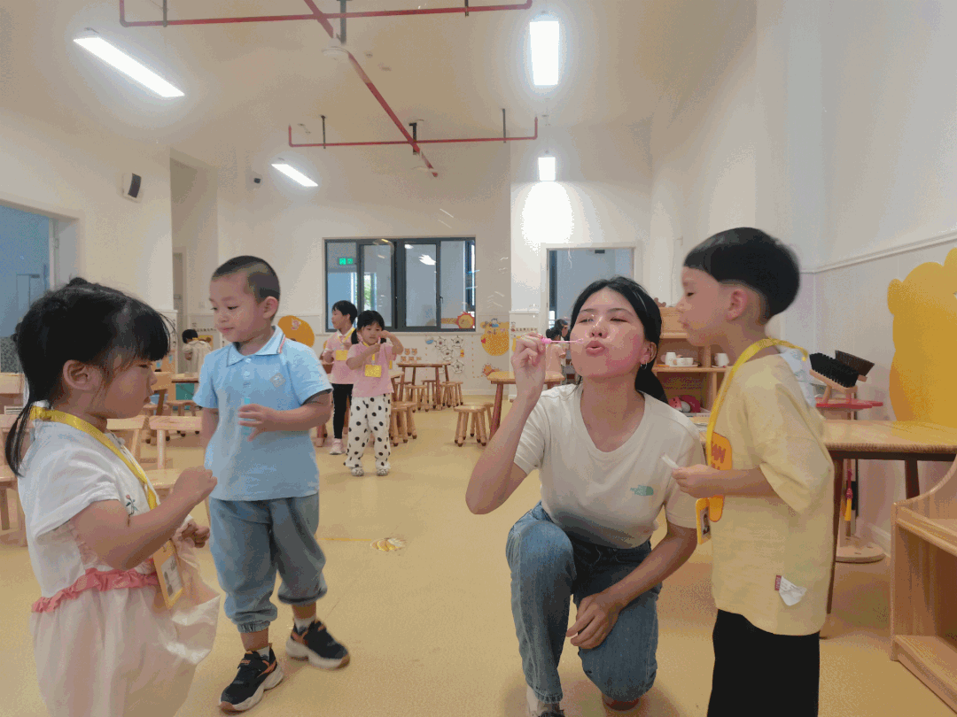 幼儿园实施上海市学前教育课程,包括生活、游戏、运动、学习四种课程类型,注重幼儿多种经验的感知与获得。同时,一群崇尚和谐、大胆创新的幼教人,在“和合文化”的精神指引下,共同探究“根植于幼儿生活的劳动教育”,旨在形成爱劳动、敬劳动者的良好风尚,培养热爱劳动显个性、有初步责任感的新时代小公民。