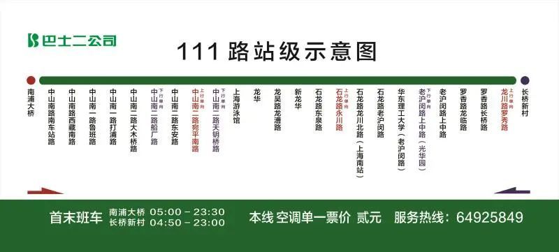 据了解,此次线网优化调整后,111路继续实行无人售票,首末班车时间分别为长桥新村4:50-23:00、南浦大桥5:00-23:30,配车数从12辆增加至17辆,南浦大桥高峰时段发车间隔较原先有所缩短。