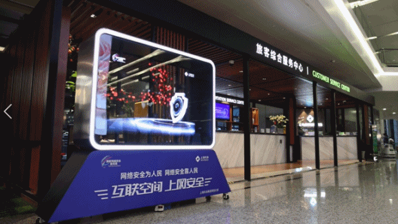 上海机场是我国三大门户枢纽之一,旅客吞吐量量全球第四。机场集团针对航空旅客这一群体,特别制作了8部系列动画短视频,提醒旅客谨防以机票退改签为由的各类网络诈骗等网络安全小知识,通过上海机场微信微博网站等新媒体矩阵,以及两场航站楼区域的电子屏予以线上发布,并同步推出扫码线上网络安全有奖问答互动活动。同时,在两场航站楼旅客动线上投放500多个电子屏,并在人流密集处设置大型裸眼3D宣传屏,营造共筑网络安全防线的浓厚氛围。
