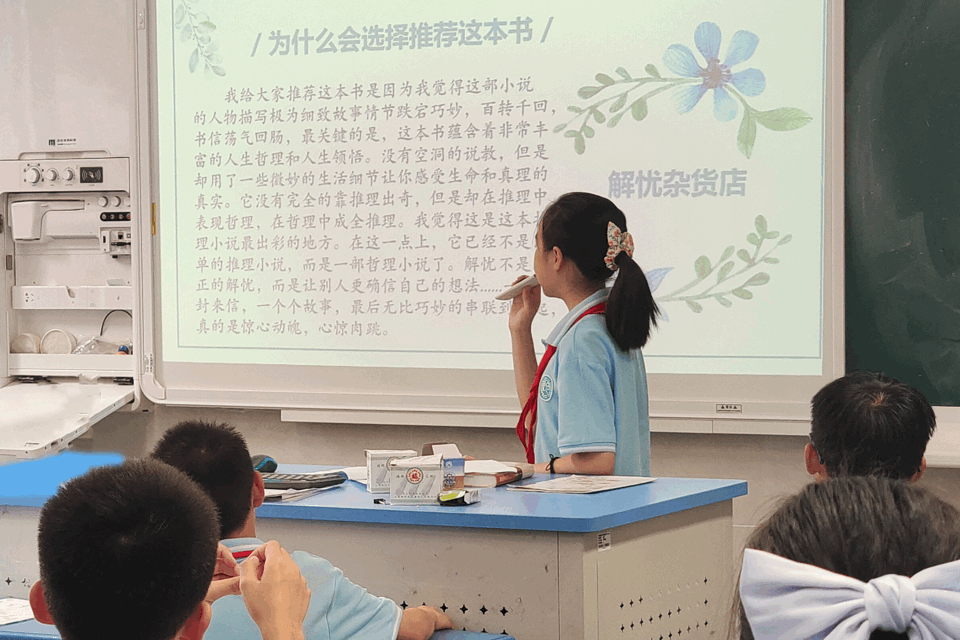 学校的课后看护与城市学校少年宫活动相结合,为学生提供多种课外拓展学习的内容,包含在教室开展的学科素养拓展活动。教师利用“绿叶传媒”“小思学院”和“空中课堂”三大主要媒体平台,形成双师课堂,帮助学生在语文、道法、历史、艺术、科学等学科类进行拓展。学校还积极开展体艺类实践活动,包含击剑、名族舞、朗诵主持、戏剧表演、管乐、科技活动,让学有余力的学生,拓展自己的视野,提升自己的能力。