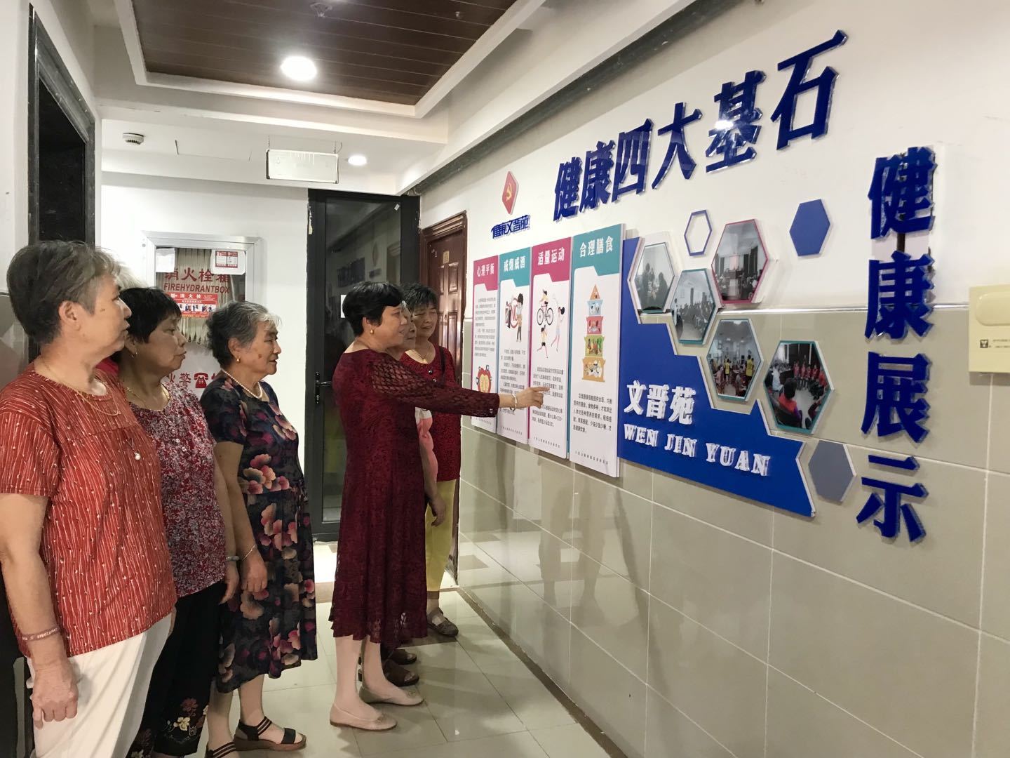 文晋苑是小昆山镇的一个动迁安置小区,建于2015年,也是一个老龄化程度较高的社区,其中60岁以上的老人占常住人口总数的三成。“原来社区的慢性病患者比例高,一开始居民的健康意识较弱,卫生、饮食、运动方面的科学水平都有待提高。”文晋苑居委会主任叶景说道,变化始于2019年,全市24个镇(街道)和112个村(居)委会参与了上海市首批健康村镇试点建设,文晋苑便是其中之一。