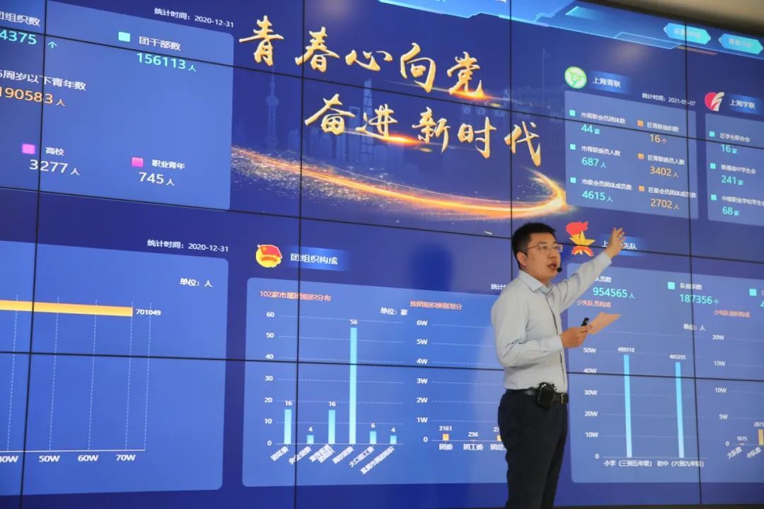 这些数据在大屏上一目了然,直观反映了上海共青团工作的规范性、创新性和时效性。