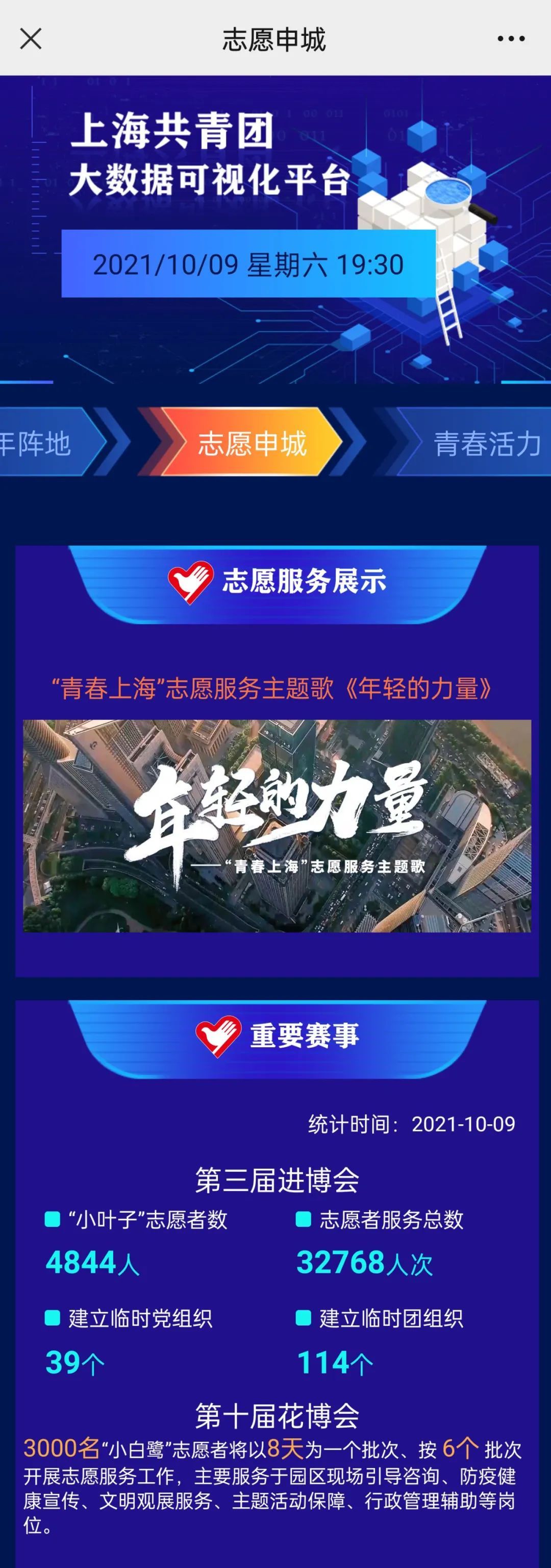 据上海团市委相关负责人介绍,上海共青团大数据可视化平台于今年5月8日上线试运行以来,逐步打通“信息孤岛”现象,将各部门、各基层条线数据清晰、直观地呈现在机关办公楼大厅,其手机端版本也于10月正式上线,力求实现“一屏观沪团,一网连全城”。