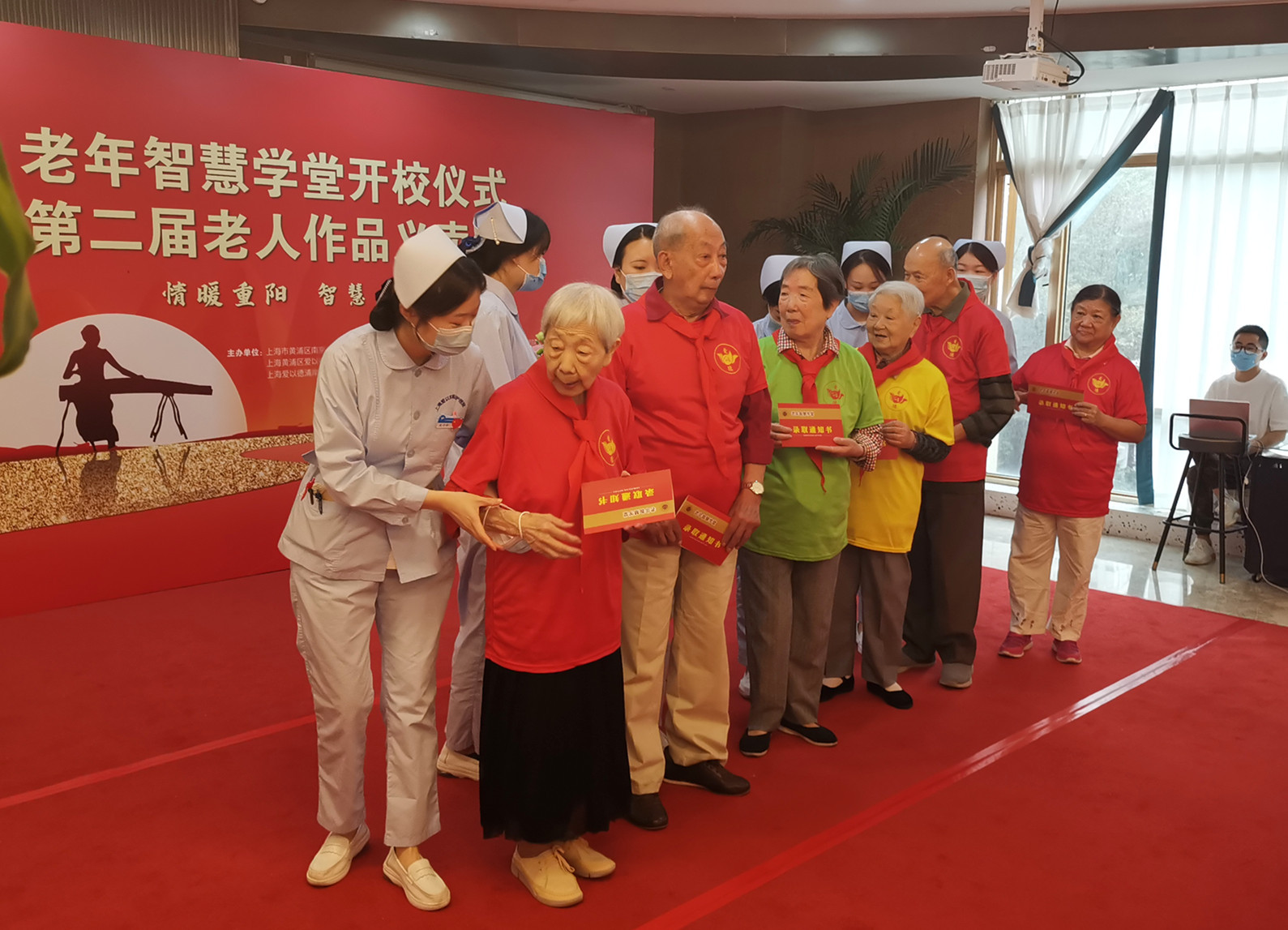 今年重阳节,入托上海黄浦爱以德养老院的老人们迎来了一场别开生面的老年智慧学堂开校仪式,部分入托老人成为了该学院的第一批“新”老学员。仪式上,南京东路街道领导与院方领导共同为老年智慧学堂揭牌,并为学堂首批学员颁发了录取通知书。