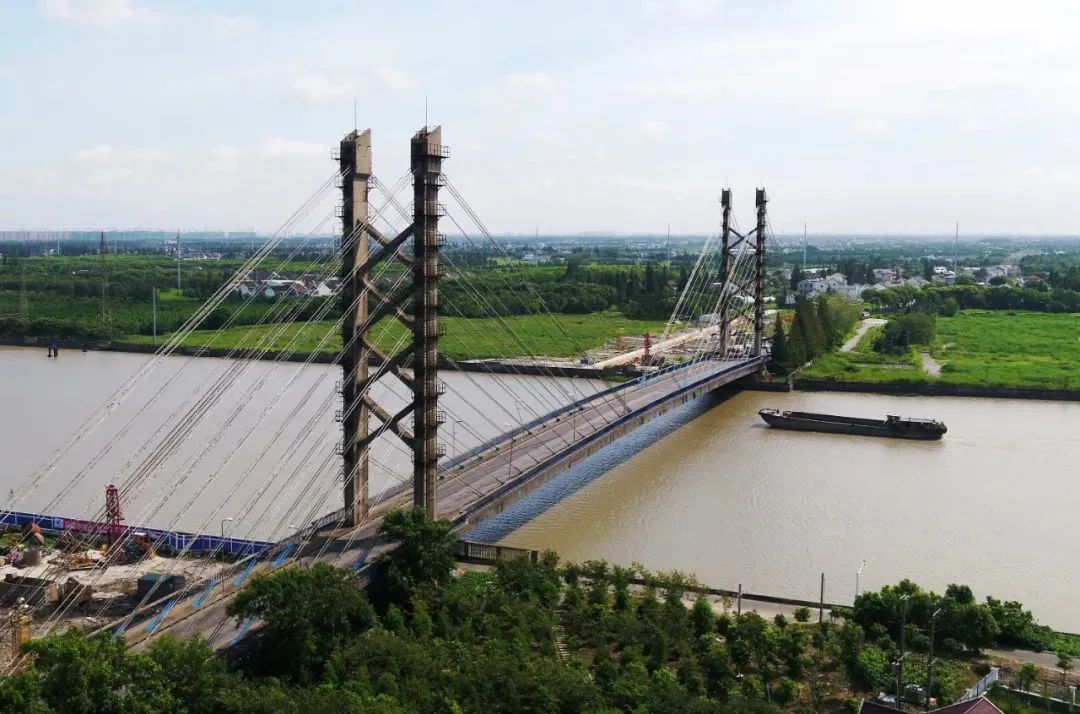 泖港大桥于1982年6月建成通车,是当时国内最大跨径斜拉桥,有上海“斜拉桥之母”的称誉,也是松江区泖港镇的地标性建筑,还是上海南浦大桥的试验桥。经过近40年运营,大桥存在结构老化、受损和斜拉索锈蚀等病害。而随着下方平申线航道的升级,这座老桥更是日渐无法满足水、陆交通的需求,升级换代势在必行。2020年9月22日,泖港大桥启动拆除工程,正式告别历史舞台。2021年6月25日,经过拆旧建新的泖港大桥新桥全线通车。
