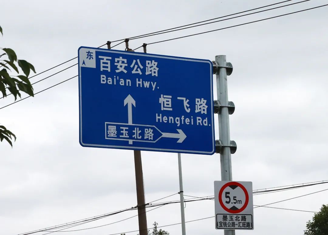墨玉北路延伸段南起钱门塘路,北至宝钱公路,全长865.28米。同步建设有郭泽塘、天仙娄、黄泾河三座跨河桥梁。新道路为双向4车道,设计车速为每小时60公里。道路两侧还各有一条非机动车道,并配有绿化带、硬隔离等设施,以保障通行安全。
