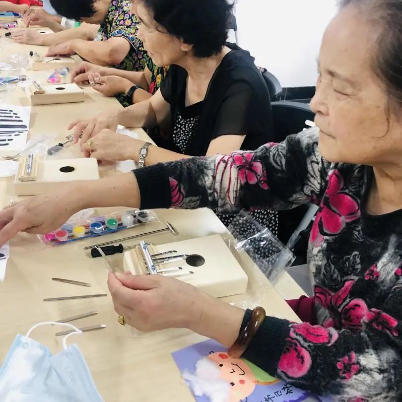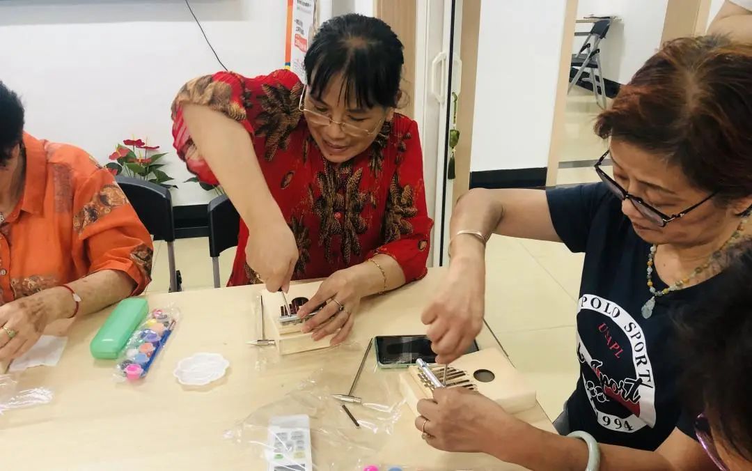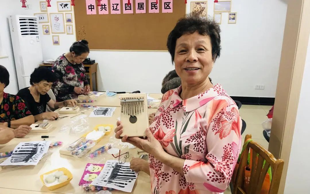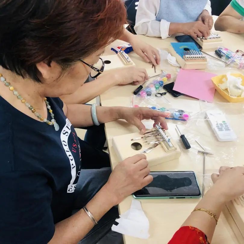 吃完重阳糕,猜对了谜语,活动现场还准备了一场“重量级”的手工活动——现场制作一部“拇指琴”,拇指琴做好后,不仅能弹出悦耳的琴声,在弹奏的过程中,对手指也是一种锻炼,大家都做得格外认真。