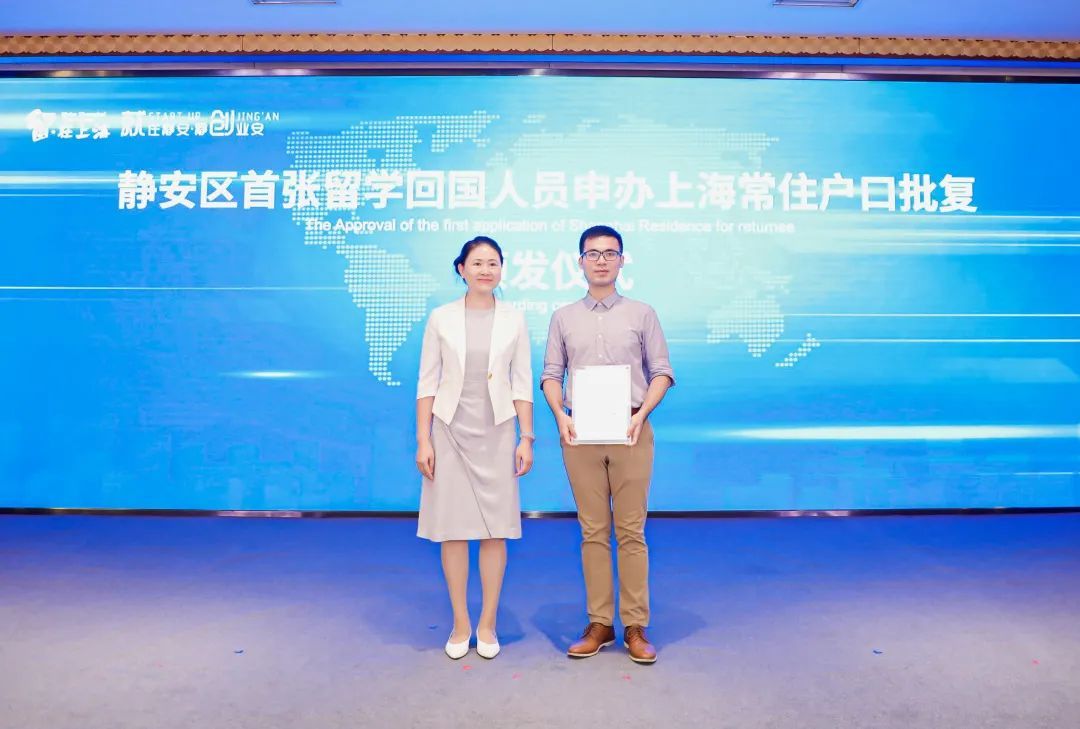 此外,来自上海第一财经传媒有限公司的留美硕士研究生谢华庆也在现场收到了静安区首张留学回国人员申办上海常住户口的批复,他表示:“静安的服务方便快捷,我非常满意!”