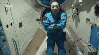 2013年4月7日,北京中国航天员科研训练中心,神舟十号航天员王亚平在天宫一号模拟讲授在太空失重环境条件下,陀螺转动的物理现象演示。