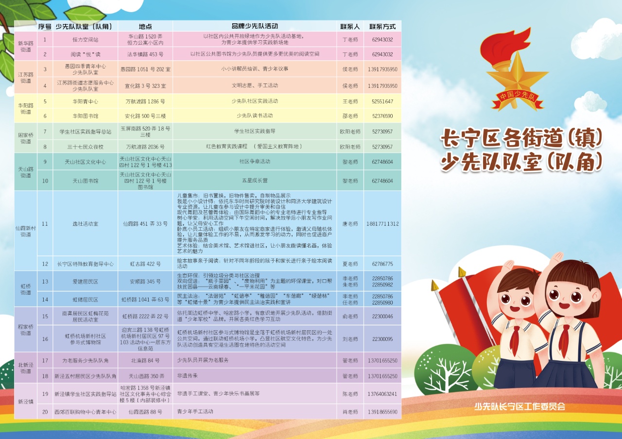 队旗飘扬,队歌嘹亮,10月15日下午,长宁区庆祝少先队建队七十二周年主题活动在北新泾街道圆满落幕。现场正式启动“15分钟校外少先队幸福活动圈”,向少先队员发起参与倡议,并发布长宁区各街道(镇)少先队队室(队角)分布图。