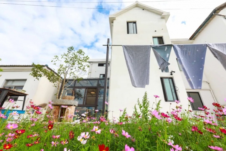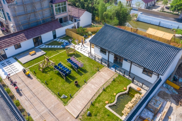 新南村还有什么好玩的地方呢?今年,一家名为新南俚舍的乡村美学工坊出现在村里。创客沈烽在镇上已经有家客栈了,他打算在新南村做点“不一样的”,“乡村振兴需要文化的助力。”因此,新南俚舍里,涵盖了艺术家工坊、艺术家茶吧、艺术家餐厅、艺术家民宿、微美术馆等功能空间,这样的综合体文化空间让人直呼“好玩”。